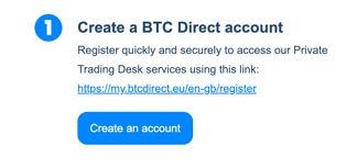 Interested in becoming a client of the Private Trading Desk at BTC Direct? A personal advisor will contact you as soon as possible. Choose one of the contact options below or request information via privatetrading@btcdirect.eu